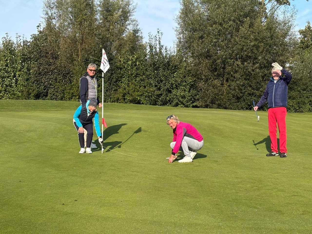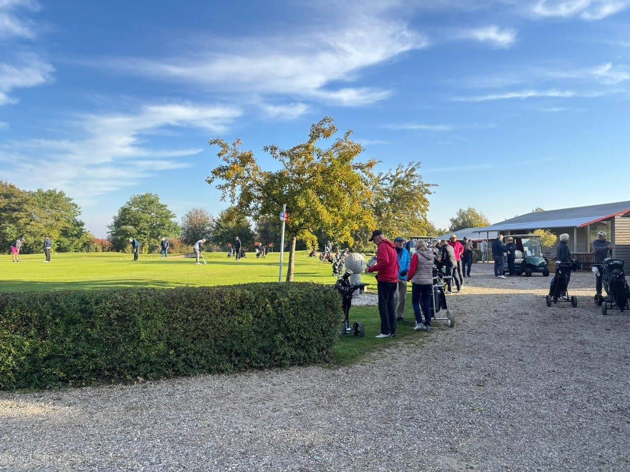 Um 10:00 Uhr mit Kanonenstart gingen 64 Teilnehmer zum Bindfaden-Turnier, gespielt mit Vierer-Auswahldrive, auf die Runde.