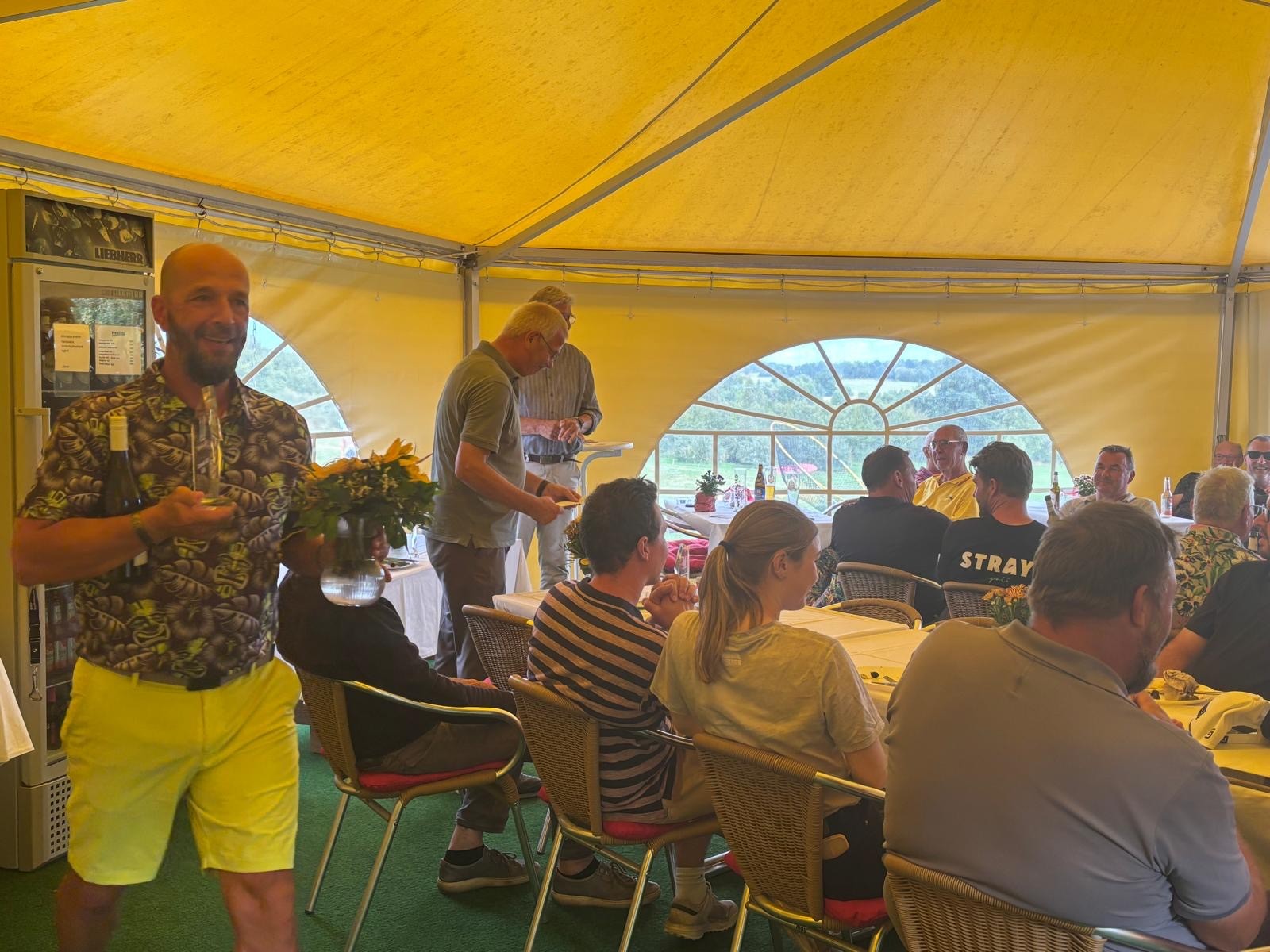 8:00 | Reinhard startet die ersten Teilnehmer von TEE 1 | Jörg Schiffmann spielt tapfer mit geklemmtem Finger | |